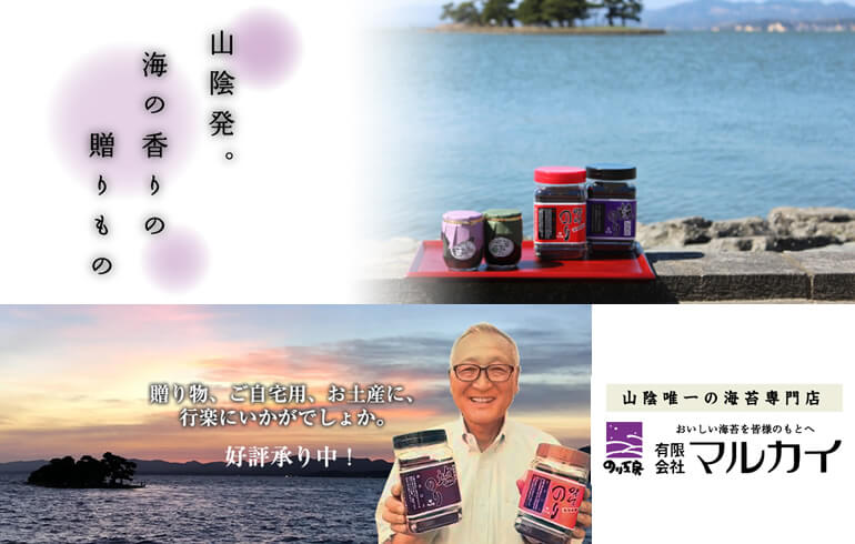 山陰(島根県・鳥取県)唯一の海苔専門店 のり工房 マルカイは、おいしい海苔を皆様のもとへ島根県松江市よりお届けします。島根県産の高級岩のり十六島海苔(うっぷるいのり)をはじめ国内から厳選した海苔を使用した味付のり、焼のり、磯のりなどを多彩にご用意しております。